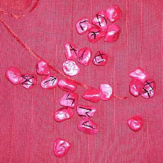 O mais recente jogo de runas a sair da minha mão... Prometo-vos que é o último até ao fim do ano! As cores não são muito ortodoxas, correspondem a um pedido que me fizeram, mas, pessoalmente, acho que fica muito interessante este esquema de cor. Pronto, vou acabar por aqui de falar das runas que faço até ao ano que vem, agora até 2010 só sobre os significados...